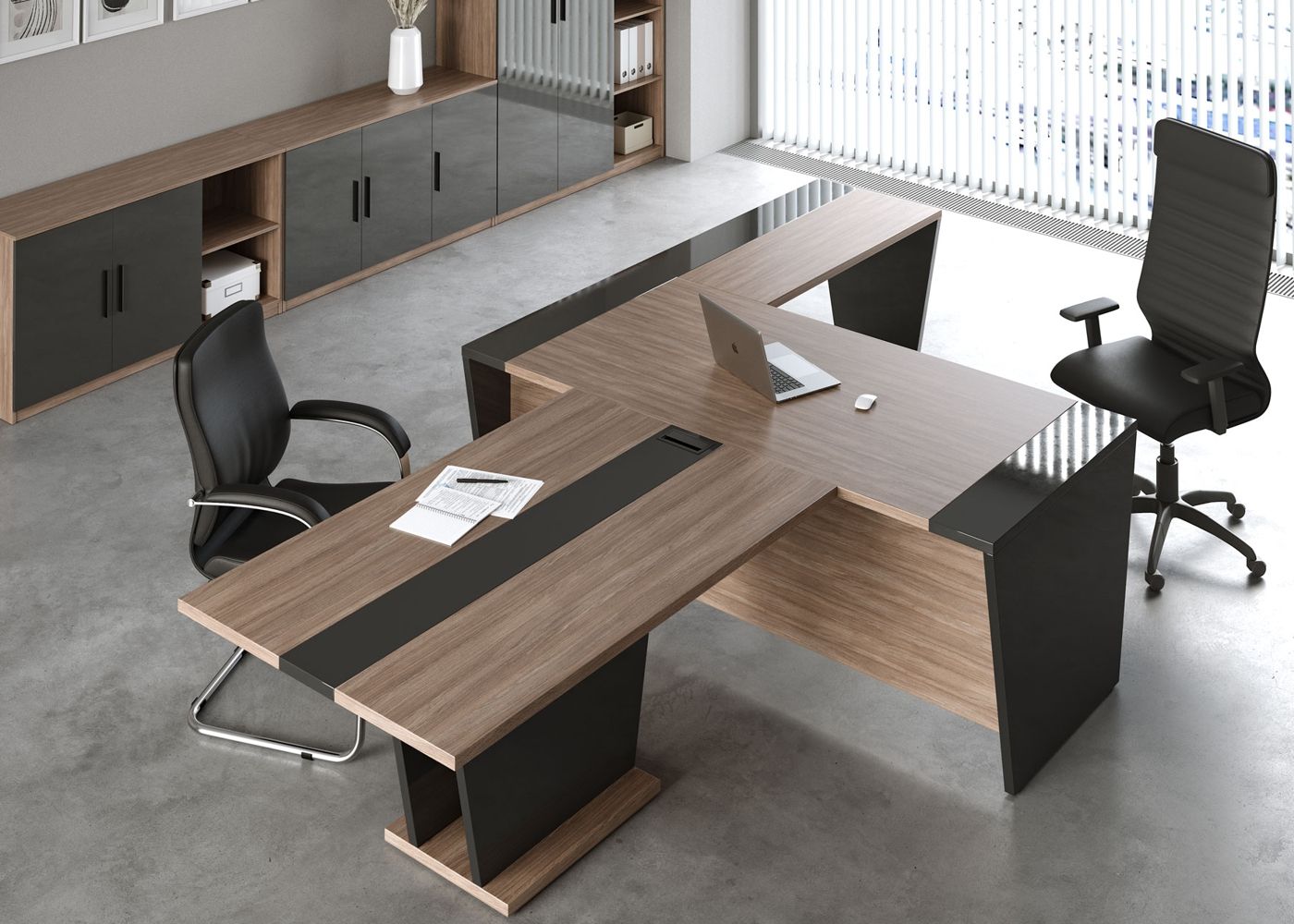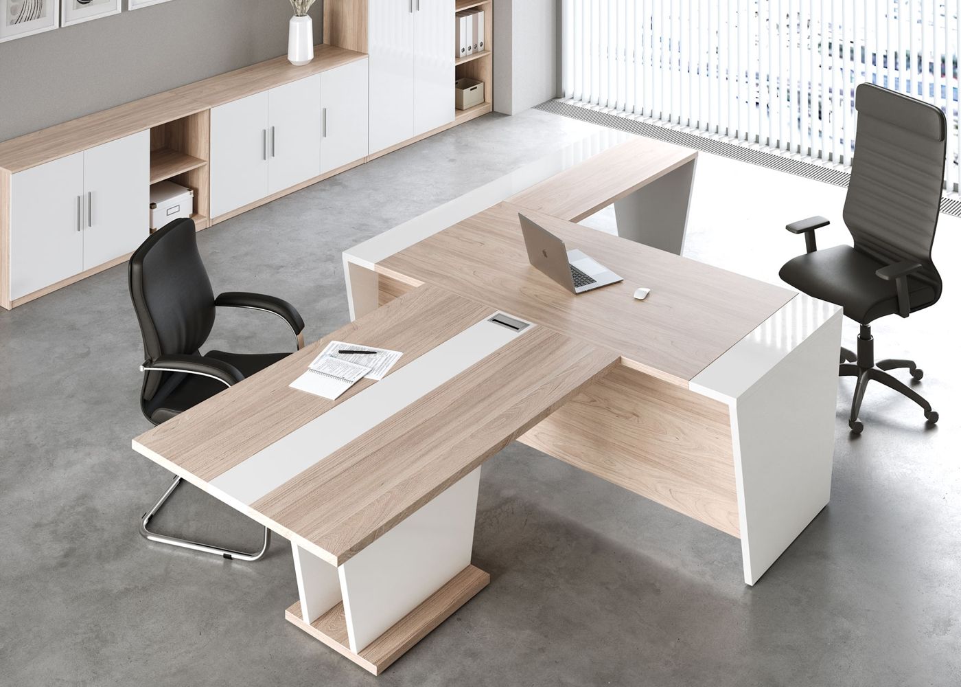 Стилистическое решение обыгрывает сочетание глянцевых однотонных и текстурированных древесных поверхностей. Декоративные элементы глянца придают кабинету Asti легкость и лаконичность форм, а благородная текстура разбивает монотонные поверхности теплым рисунком дерева. Особенность модели – возможность комбинировать глянцевые и древесные фасады шкафов, тумб и передние панели столов при заказе, создавая уникальные комбинации. Кабинет Asti купить по выгодной цене вы можете в нашей компании.