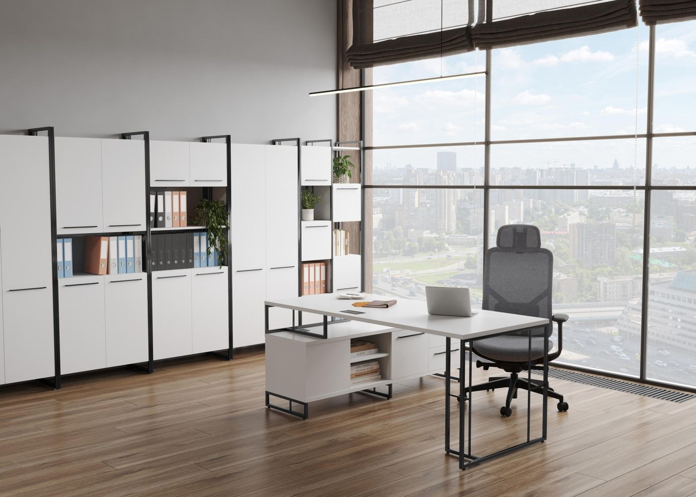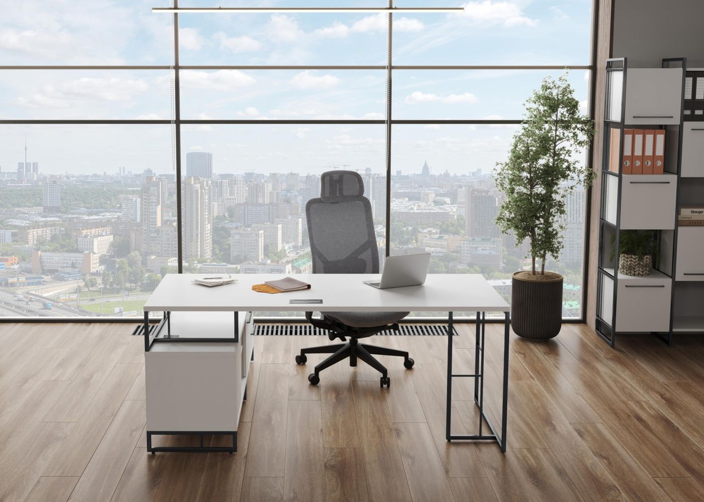 Rift Direct RF.SRT-24 (L) (Белый брилиант/Антрацит) Стол руководителя на опорной тумбой, левый