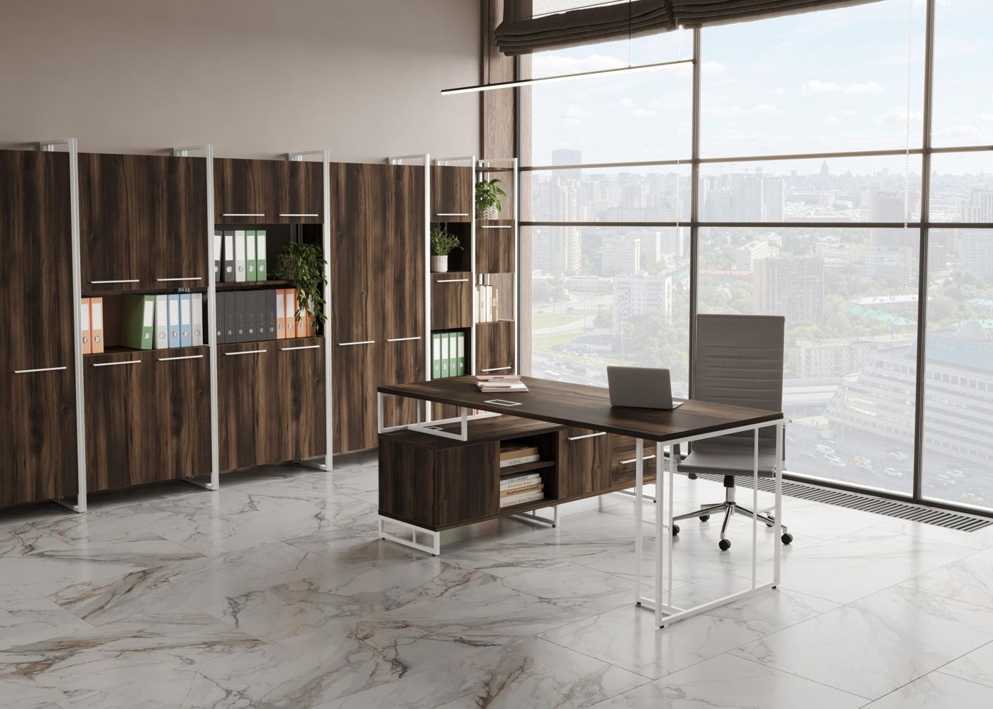 Rift Direct RF.SRT-25 (L) (Дуб мали/Белый) Стол руководителя на опорной тумбой, левый