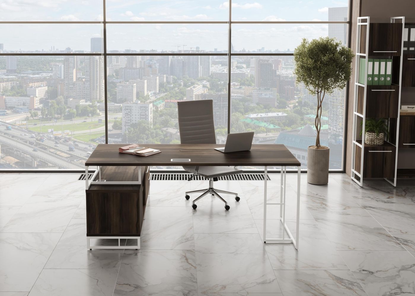 Rift Direct RF.SRT-24 (L) (Дуб мали/Белый) Стол руководителя на опорной тумбой, левый