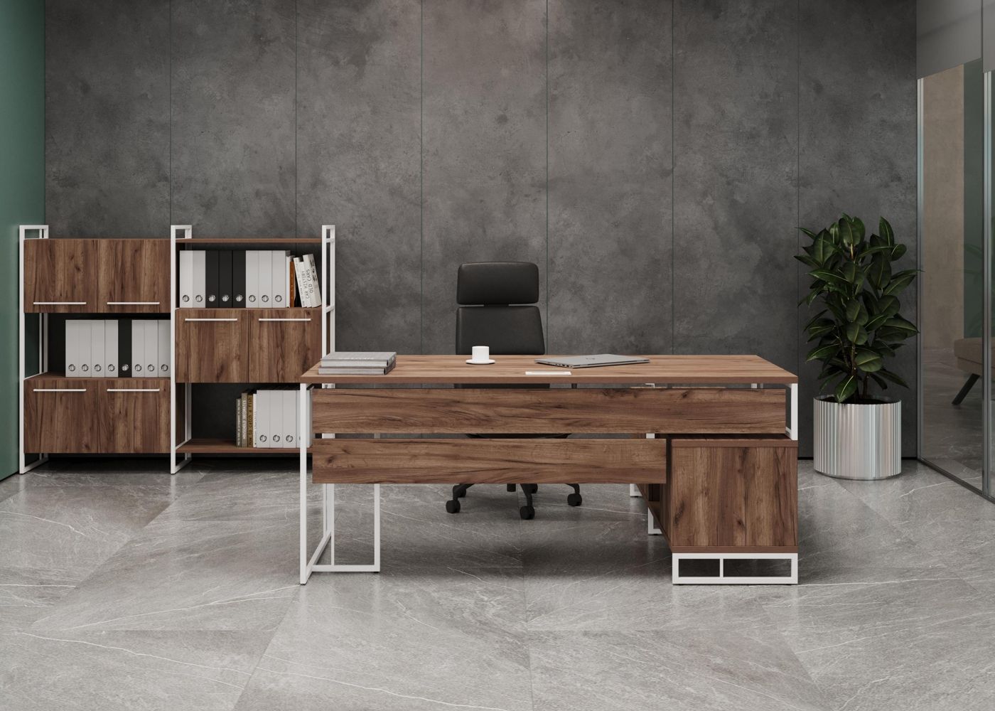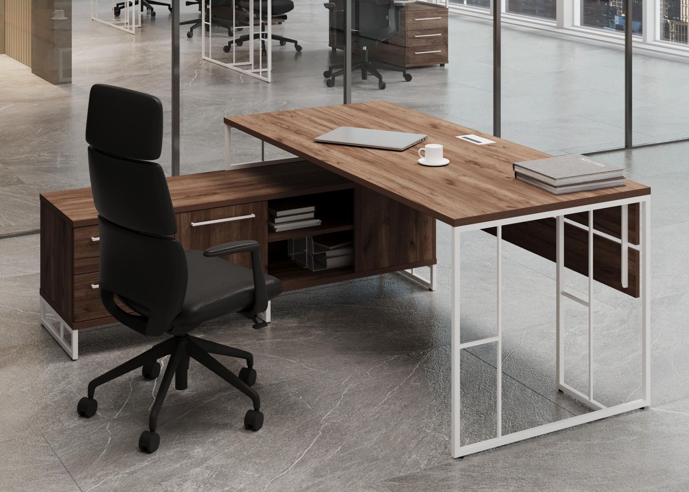 Rift Direct RF.SRT-25 (L) (Дуб табак/Белый) Стол руководителя на опорной тумбой, левый