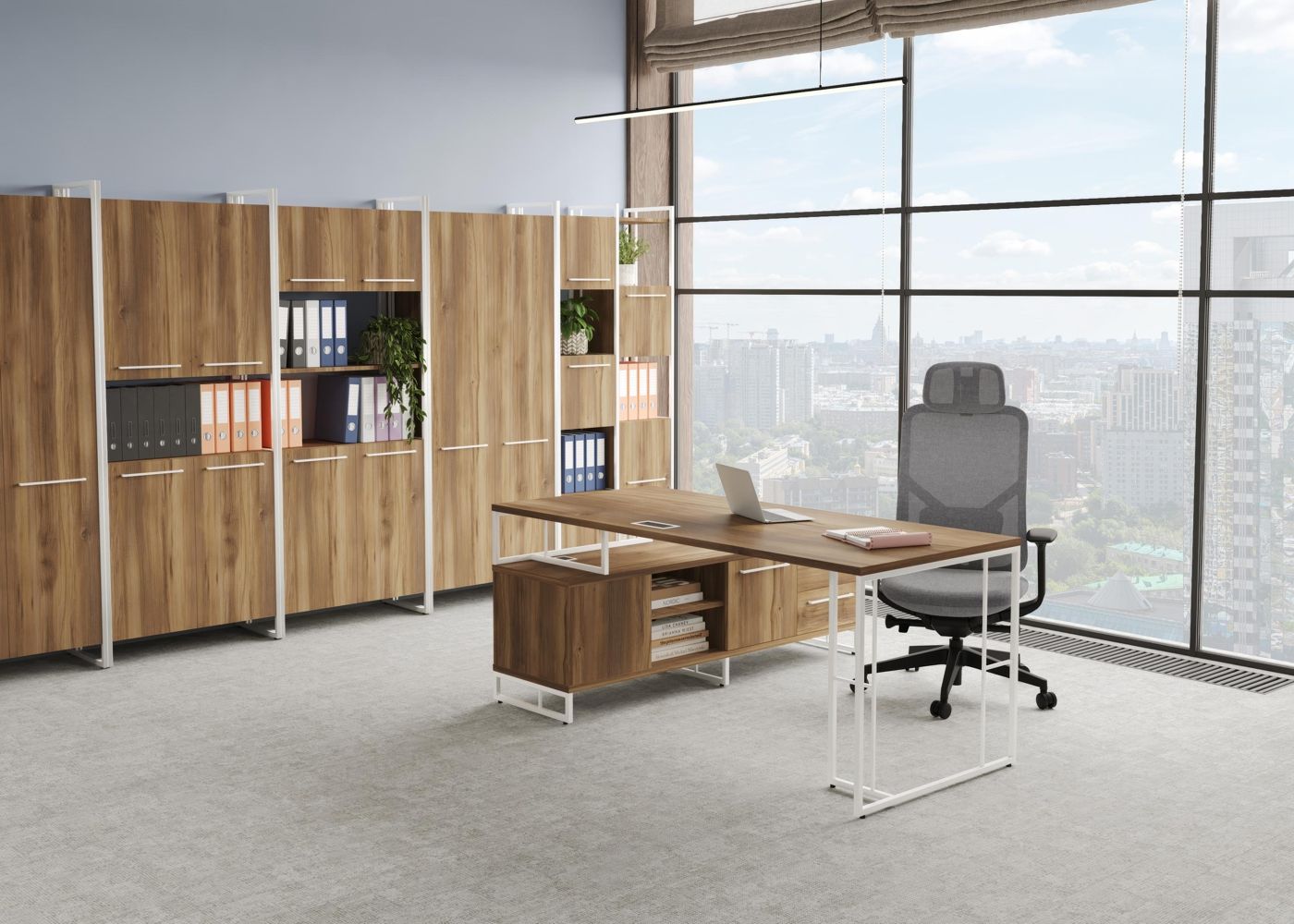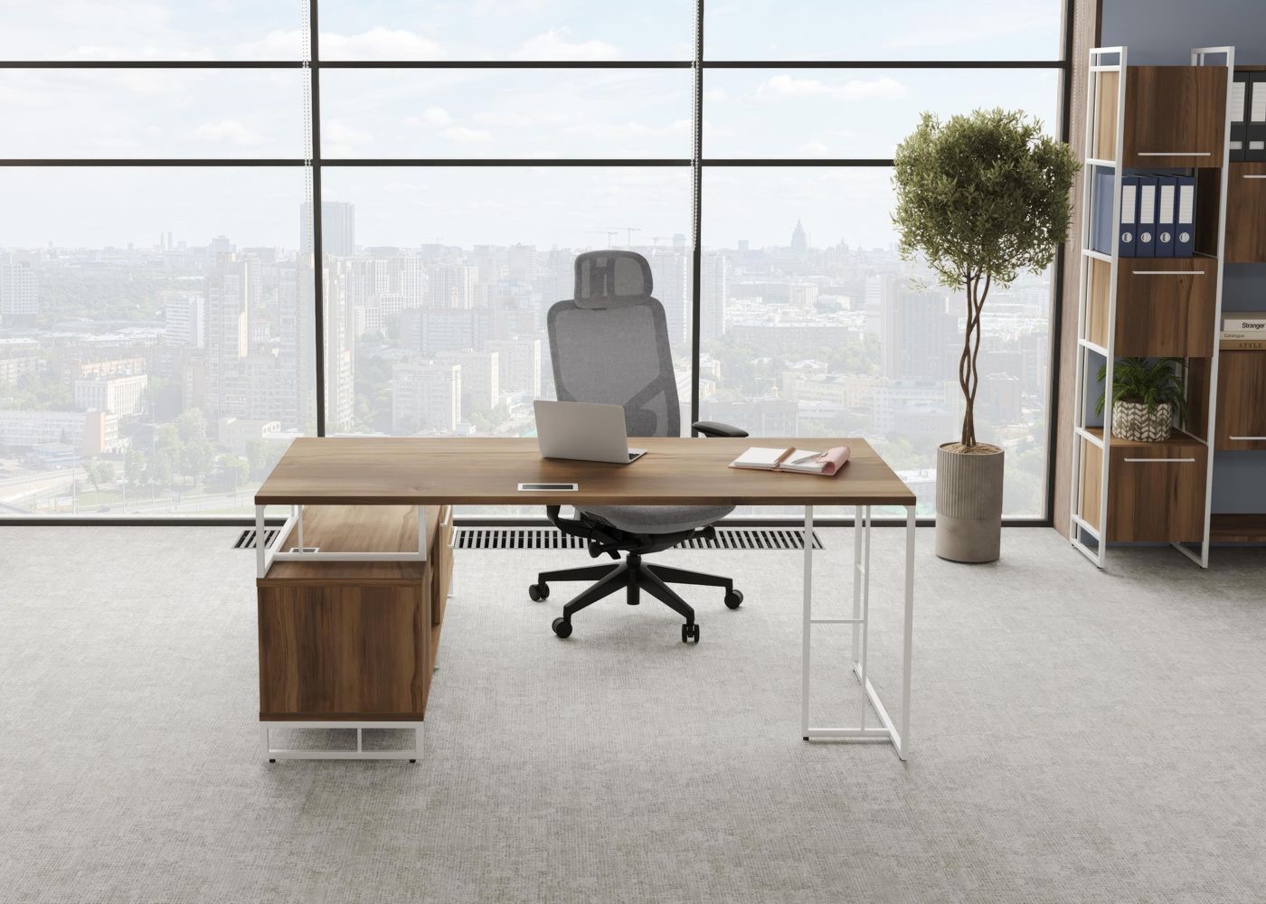 Rift Direct RF.SRT-24 (L) (Сандал янтарный/Белый) Стол руководителя на опорной тумбой, левый