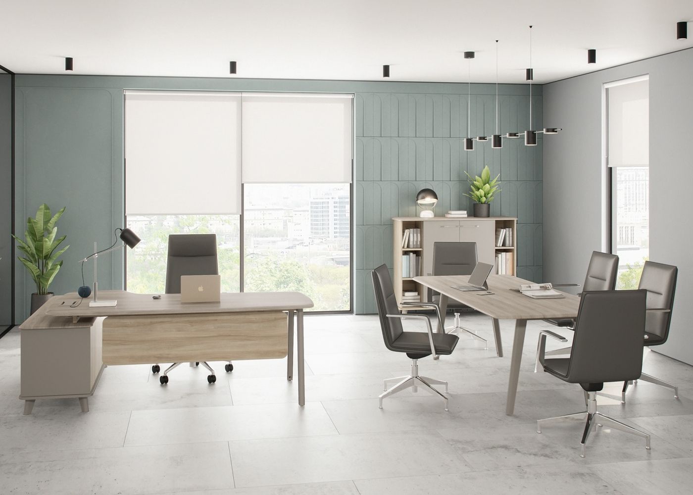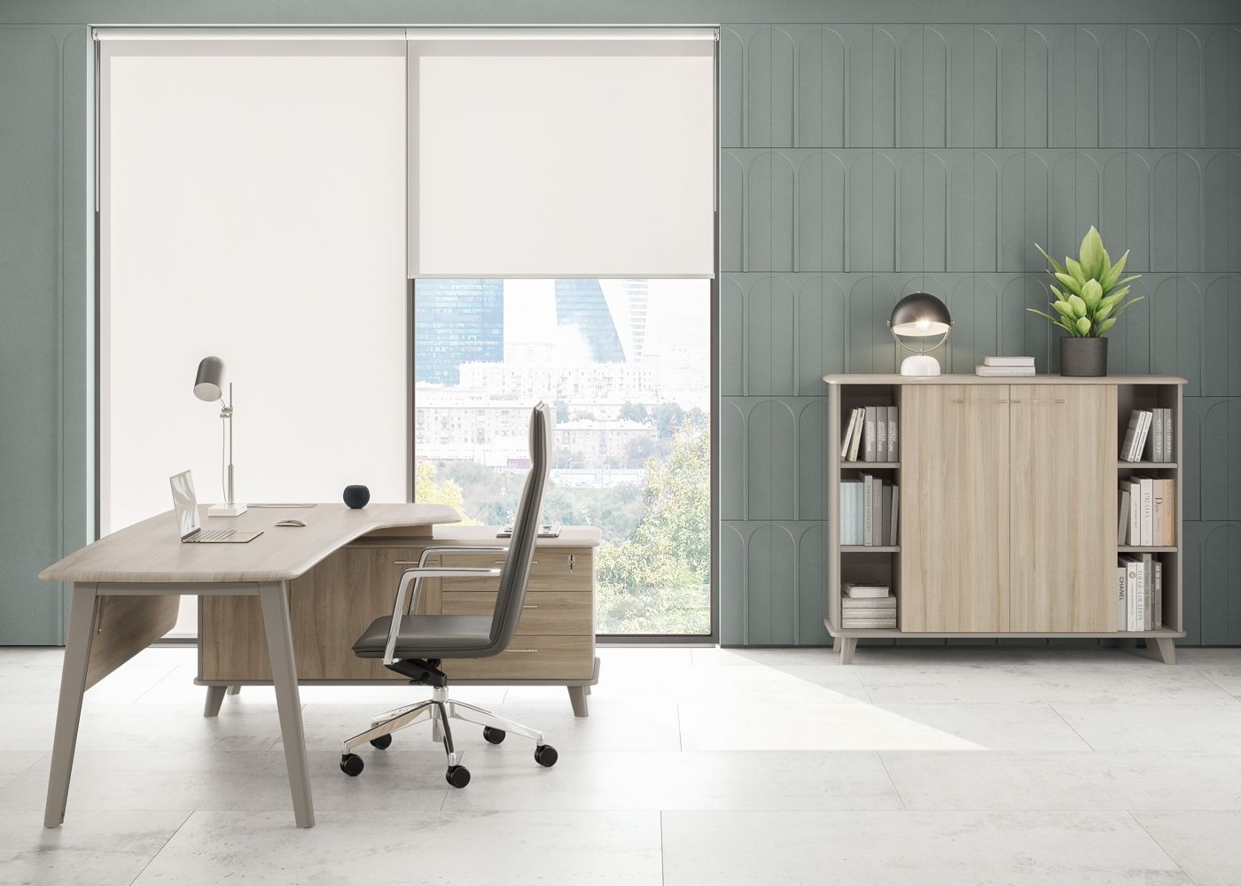 Тайм метал ТМ М1 109 ВЛ ВЛ ВЛ (Вяз либерти) Стол руководителя на опорной тумбе левый (тип 2)
