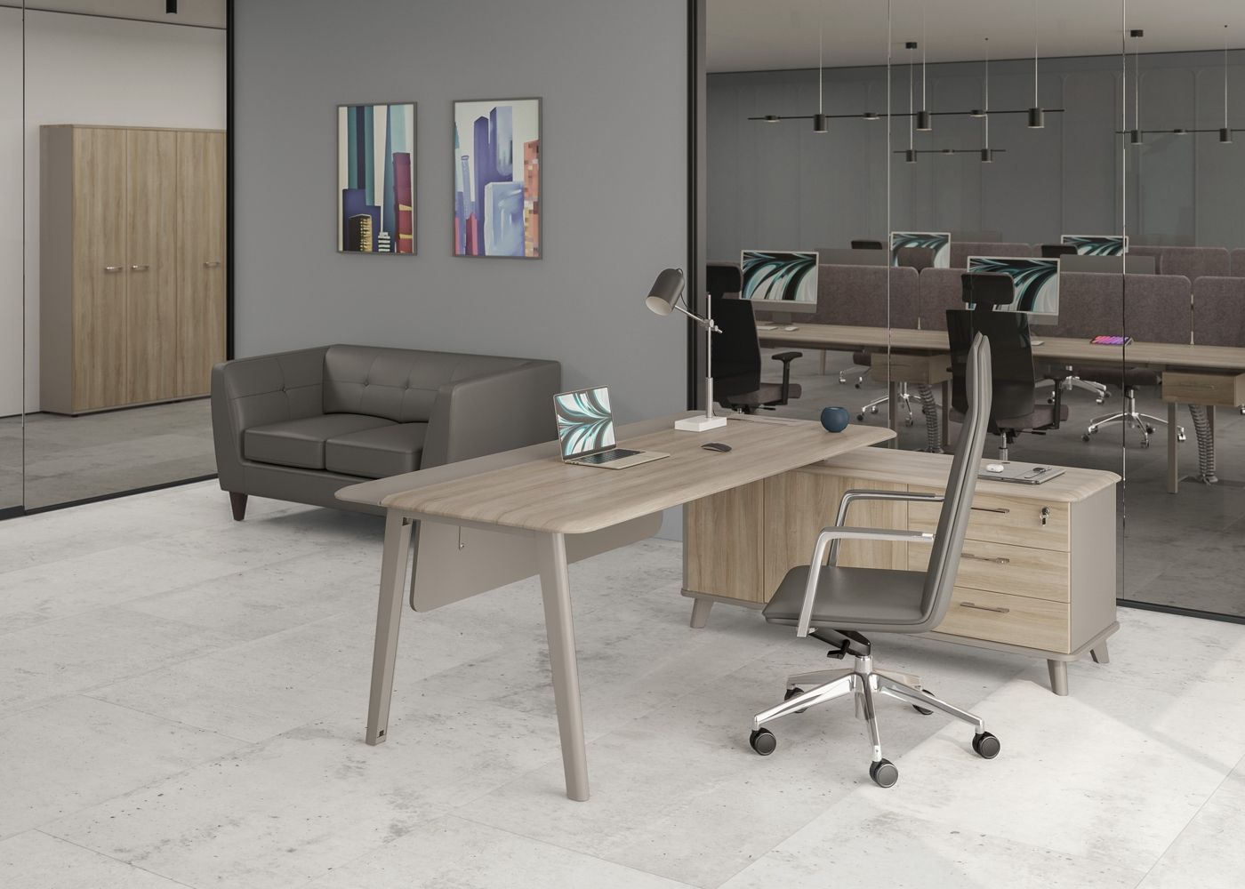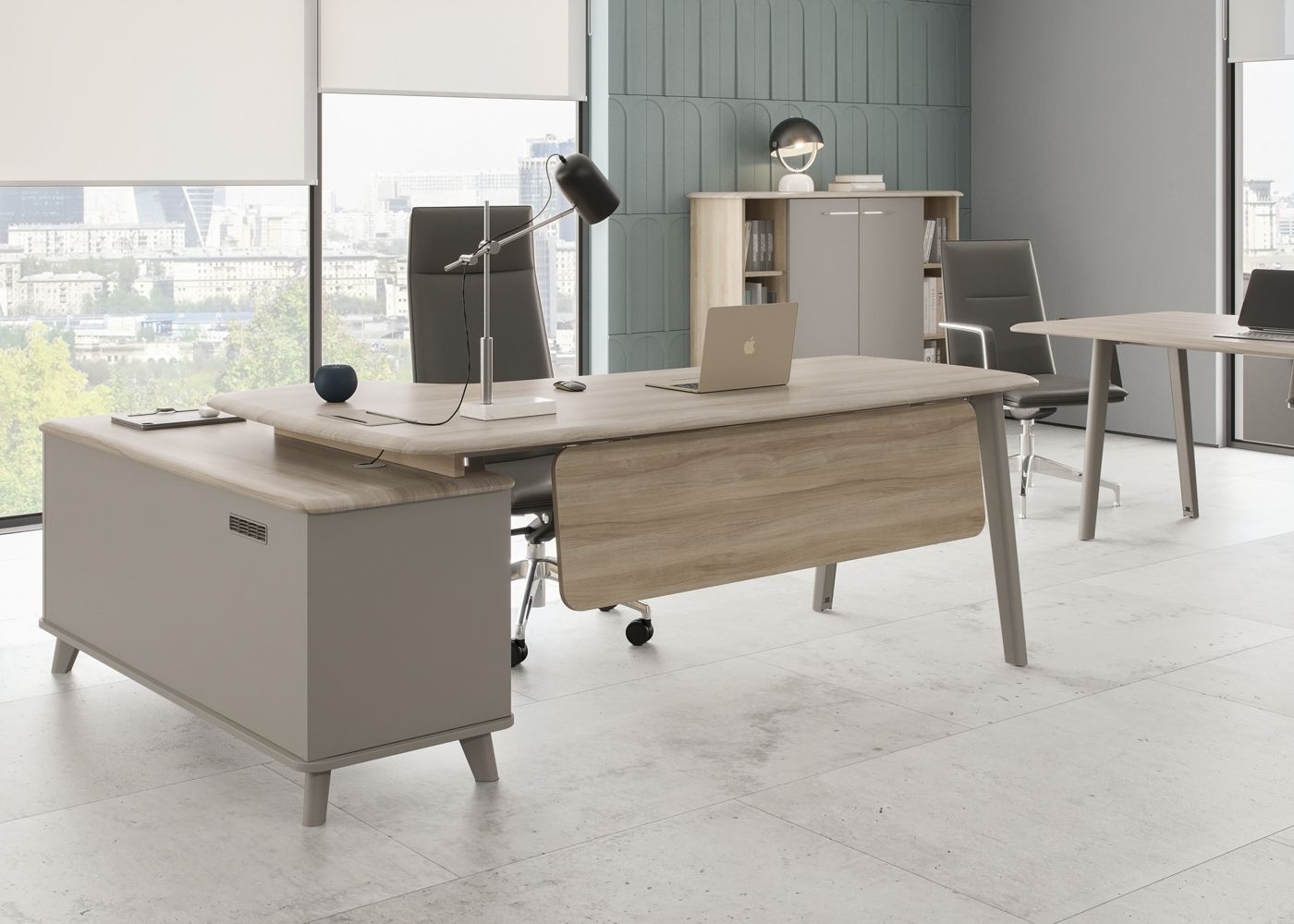 Тайм метал ТМ М1 105 ВЛ ВЛ/МП МП (Вяз либерти/Мокко премиум) Стол руководителя комбинированный левый на тумбе малой (тип 1)