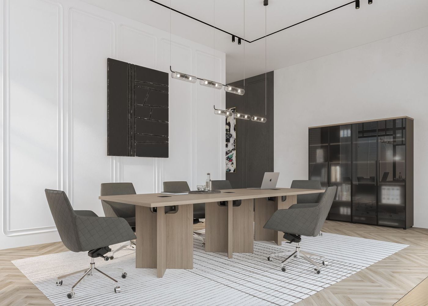 У.РУС РС 0106 ДЧ/ЛС (Дуб виченца/Лава серая) Стол руководителя с кабель-каналами правый