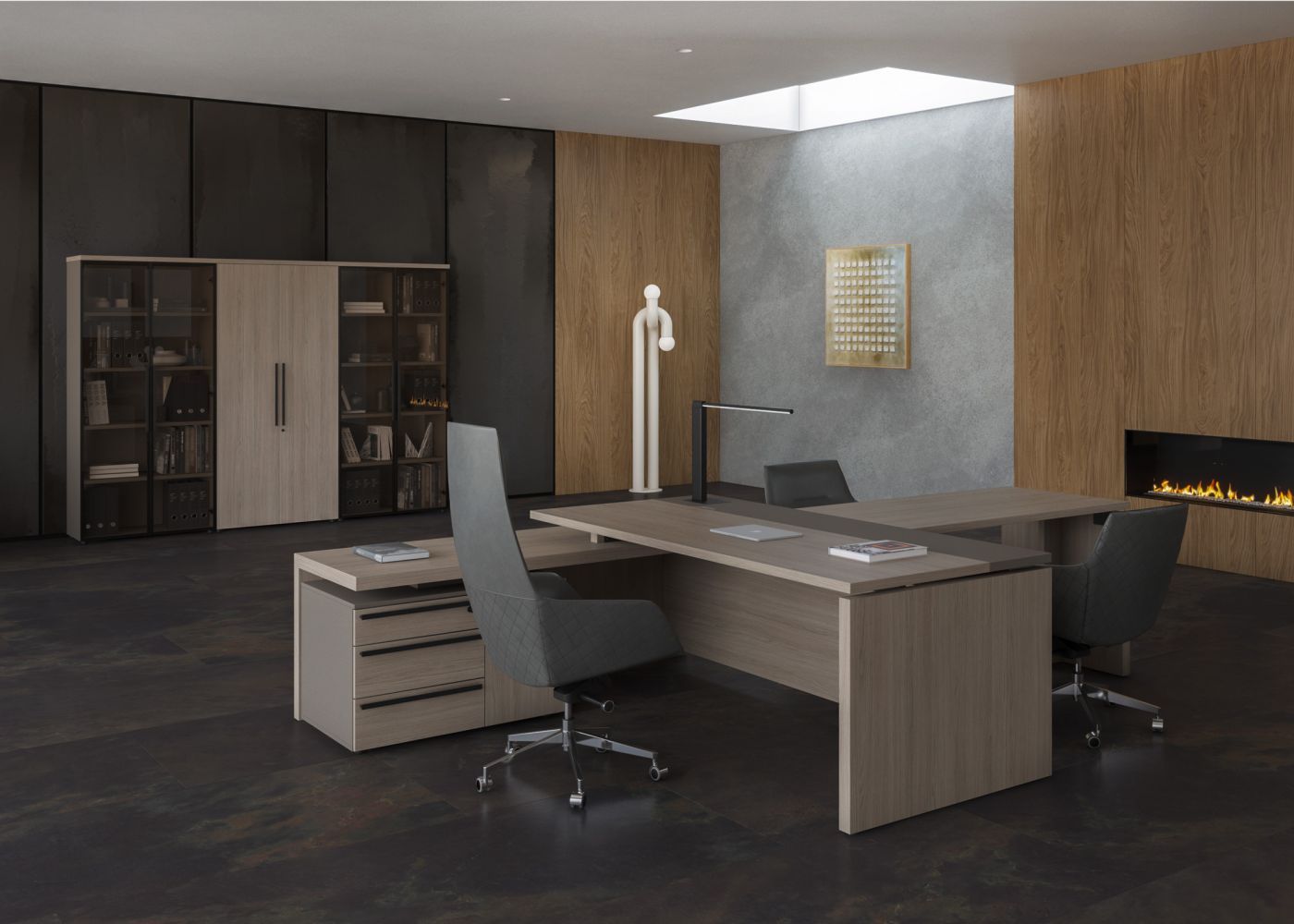 У.РУС РС 104 ДЧ/ЛС (Дуб виченца/Лава серая) Стол руководителя правый