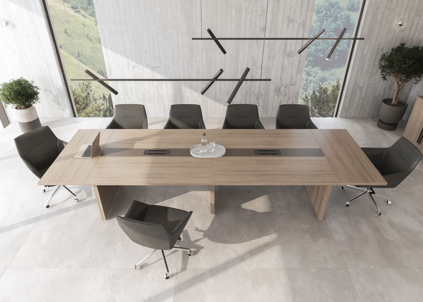 У.РУС РС 105 ДЧ/ЛС (Дуб виченца/Лава серая) Стол руководителя с кабель-каналами левый