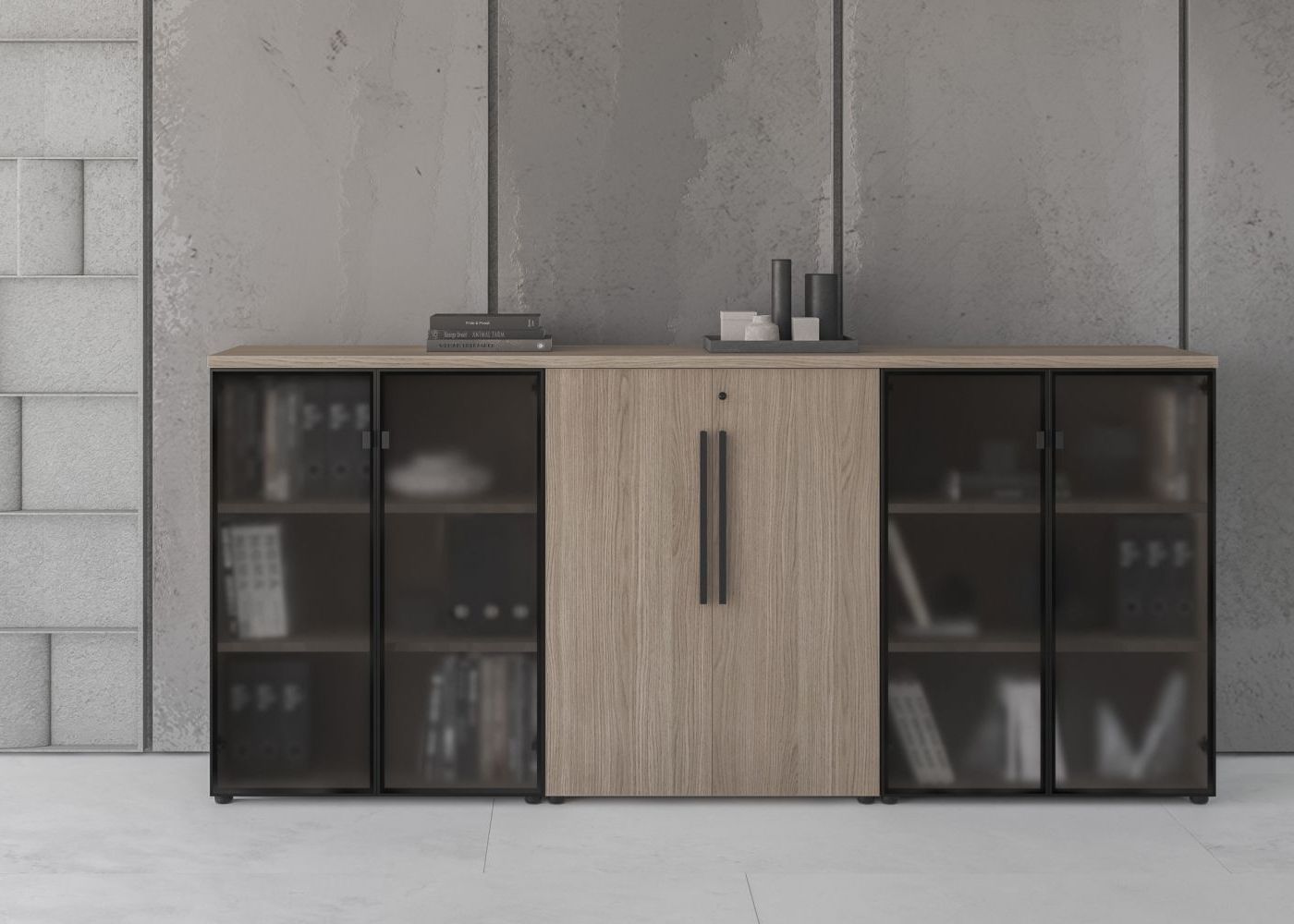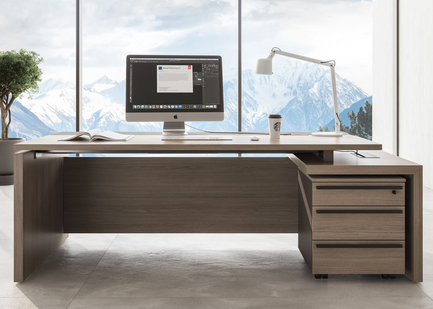 У.РУС РС 119 ДЧ/ЛС (Дуб виченца/Лава серая) Стол руководителя с тумбой 3-ящичной с замком левый