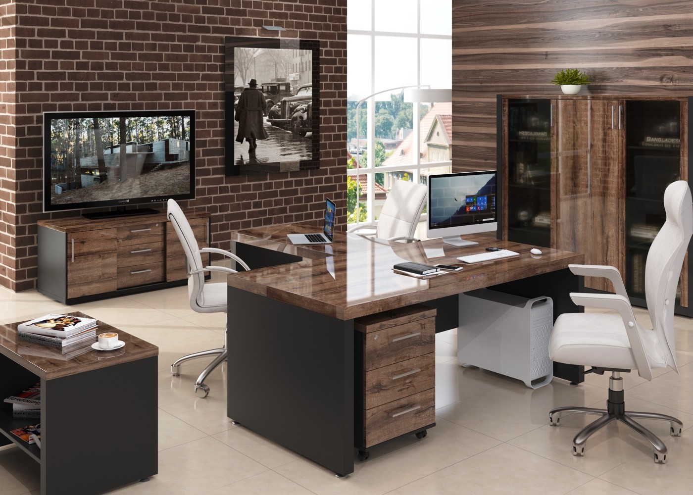 Верона Вр-1.6 (Дуб монастырский/черный) Стол для заседаний