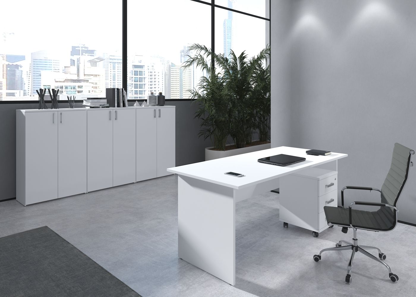 Стиль 2ML.169 (Шамони темный/Алюминий матовый) Стол рабочий, прямолинейный