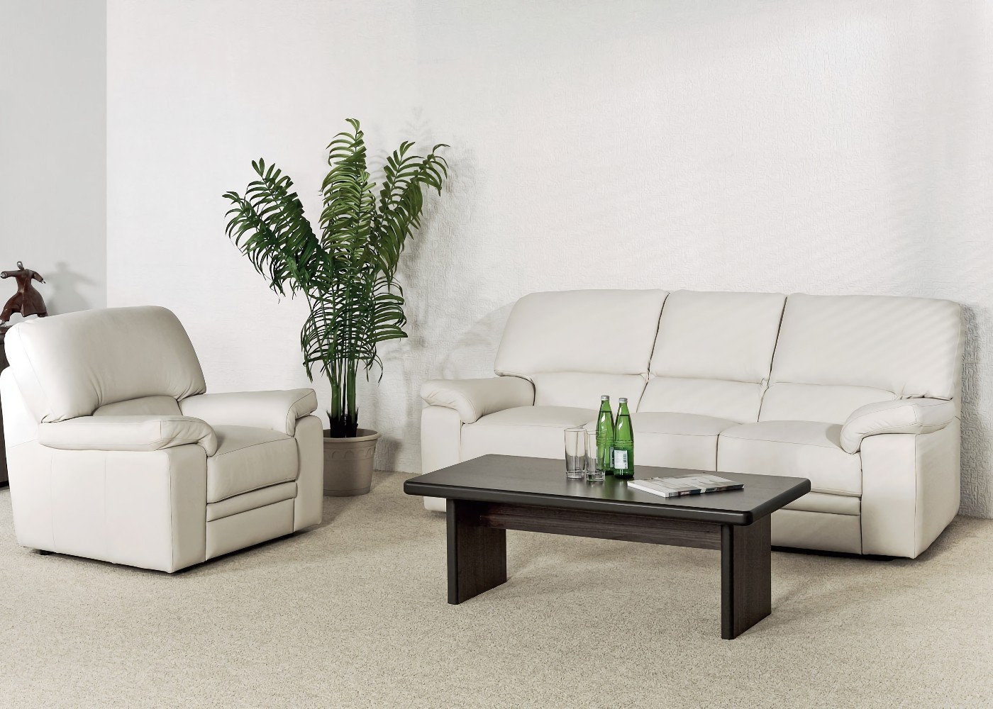 Ella 3 (Бежевая кожа) Диван трехместный